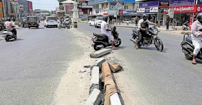 മൂവാറ്റുപുഴ∙ നഗരത്തിലെ റോഡ് ടാർ ചെയ്തു യാത്ര സുഗമമായതിനു പിന്നാലെ പുതുതായി നിർമിച്ച മീഡിയനും റോഡ് സുരക്ഷാ വേലിയും അപകടങ്ങളിൽ തകർന്നു. എംസി റോഡിൽ അരമനപ്പടിയിലാണ് അമിത വേഗത്തിൽ എത്തിയ കാർ ബൈക്ക് യാത്രികനെ ഇടിച്ചു വീഴ്ത്തിയ ശേഷം നിയന്ത്രണം വിട്ടു റോഡരികിലെ കടകളുടെ ഷട്ടറുകളും സുരക്ഷാ വേലിയും തകർത്തത്.